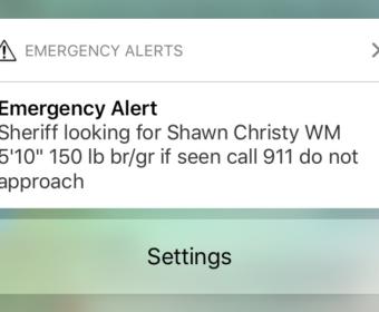 A text alert was sent to many Crawford County residents informing citizens of local law enforcement’s search for fugitive Shawn Christy.