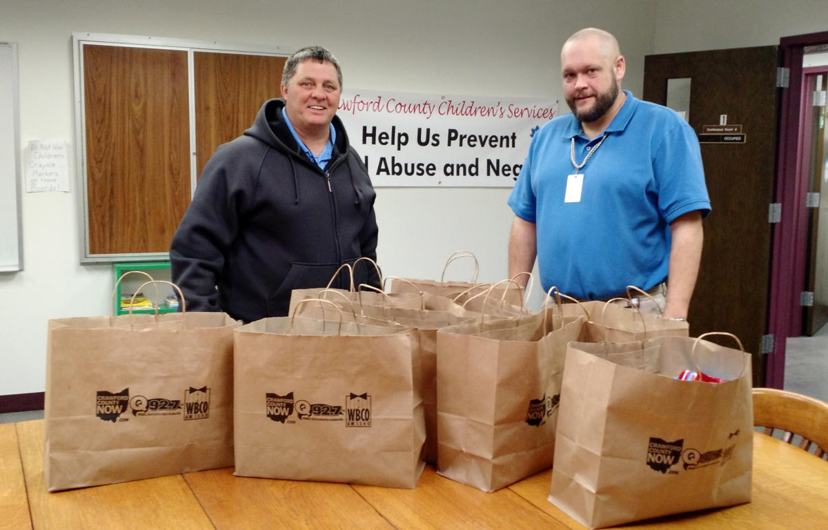 Andy Nigh, administrator with the Child and Family Unit at Crawford County Job and Family Services, was very appreciative of the bags of candy, chocolate-covered raisins, and – ironically – toothbrushes that employees of WQEL/WBCO and Crawford County Now delivered to his offices Monday morning. Though the conference rooms at Job and Family Services usually resemble Santa’s workshop during Christmastime thanks to the generous donations by local groups and businesses, Nigh said other holidays during the year often get overlooked.