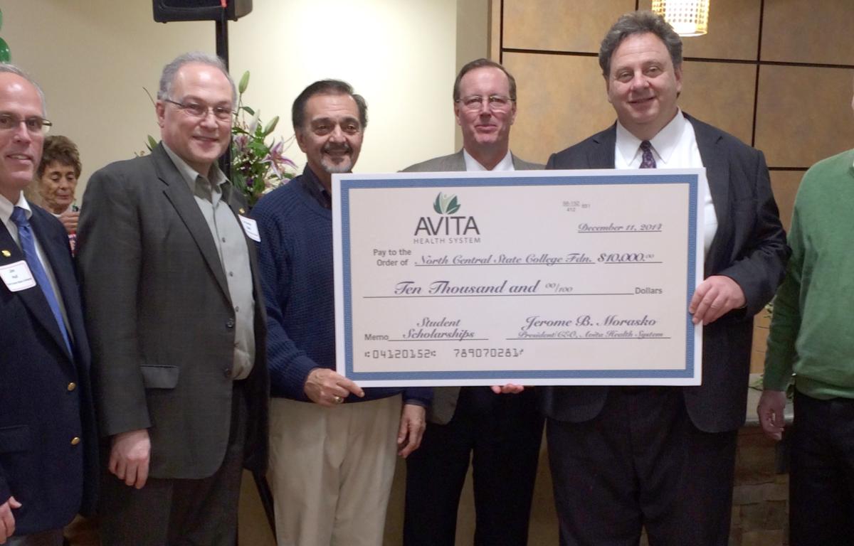 During the December 2014 Mansfield/Richland Chamber of Commerce Business After Hours hosted by Avita Health Systems at their new facility at the Richland Mall in Ontario, representatives of Avita Health Systems presented a check for $10,000.00 to establish an endowed Avita Health System Scholarship Fund for Students at North Central State College. Residents of Crawford and Richland Counties who pursue studies in the Health Sciences will be eligible for the awards.