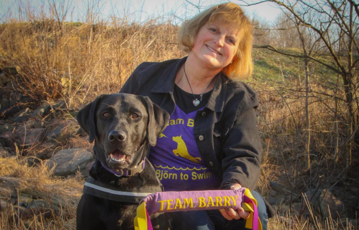 Auck and her husband, Matt, who have six other dogs, love being on “Team Barry.” In fact, she said it’s only fitting that his registered full name is Barry Bjorn Giovanni. The Italian surname means “gift from God,” and they have adopted the slogan “Bjorn to Swim.”
