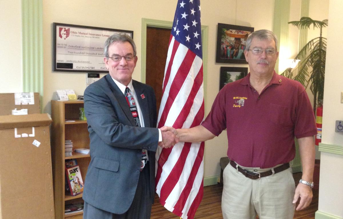 The Bucyrus Lions Club recently presented a flag and stand to Crawford: 20/20 Vision. Lions Club President Terry Spiegel made the presentation to David Williamson who is the Crawford: 20/20 Vision project manager during a recent Lions Club meeting.