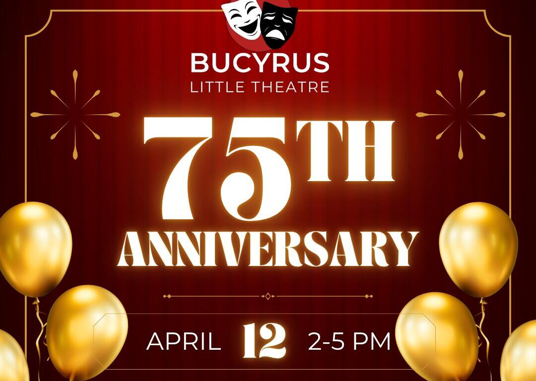 BUCYRUS, OH (CRAWFORD COUNTY NOW)—Bucyrus Little Theatre (BLT), a beloved cornerstone of arts and culture in Crawford County since 1951, invites the community to a special free event celebrating its 75th anniversary and unveiling the highly anticipated 2026-27 season on Sunday, April 12, 2026, from 2:00 p.m. to 5:00 p.m. at the theatre located at 130 Songer Ave.