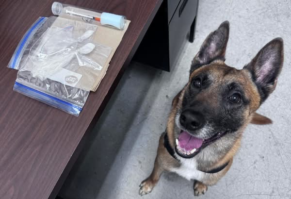 To assist with the search, K-9 Capone was brought to the scene to perform a free air sniff of the vehicle.