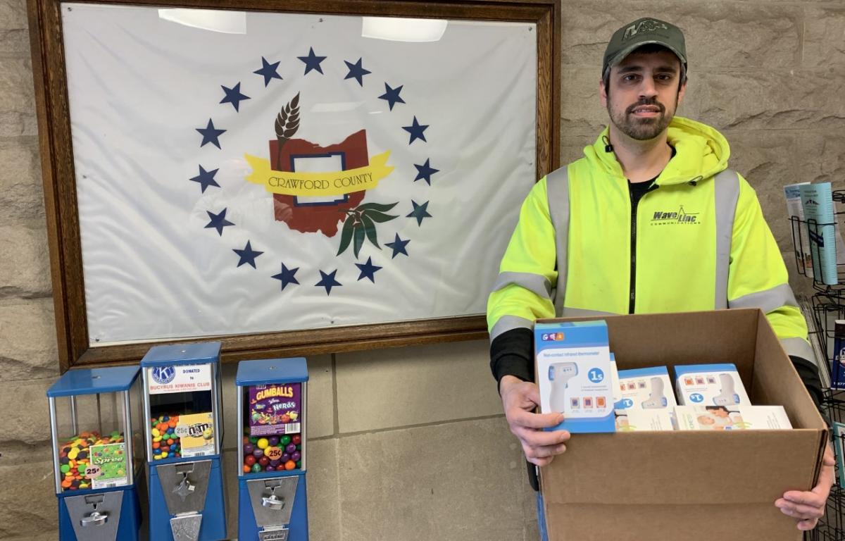 Kurt Fankhauser of Wavelinc Communications purchased 20 infrared no-contact thermometers and donated them Monday to the Crawford County Emergency Management Agency for first responders.