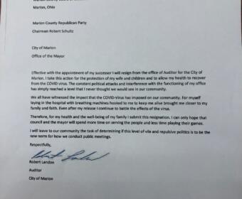 MARION— Former Marion City Auditor Robert Landon returned to City Hall on Thursday to […]