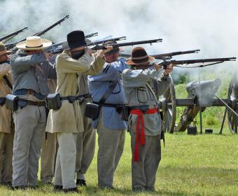 Photos of a Civil War reenactment and camp at Unger Park hosted by the Crawford Park District.