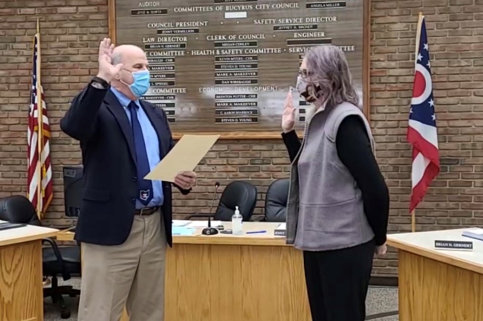 BUCYRUS—As the Bucyrus City Council was about to begin its work in the new year, Bucyrus City Mayor Jeff Reser had the pleasure of swearing in the originally appointed but most recently elected council member C. Aaron Sharrock. Sharrock is a Democrat serving the second Ward.