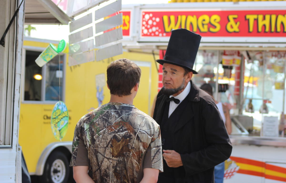 Lincoln, who was portrayed by John Cooper, greeted fairgoers from 2 to 8 p.m. giving listeners a glimpse into the life and times of Honest Abe.