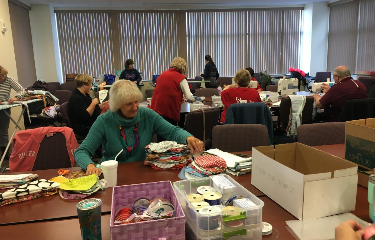GALION — Every month the conference room off the main lobby at Galion Community Hospital is transformed into an old-fashioned sewing bee. An assembly line of fabric, ribbon, sewing machines, ironing boards and boxes and boxes of hats.