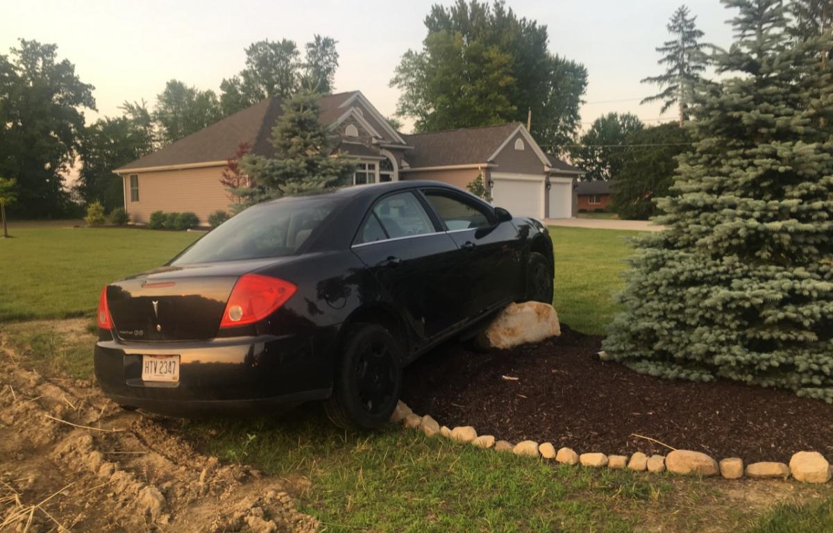 According to the police report, one of the vehicles went off the roadway and struck trees in the front yard of a residence.