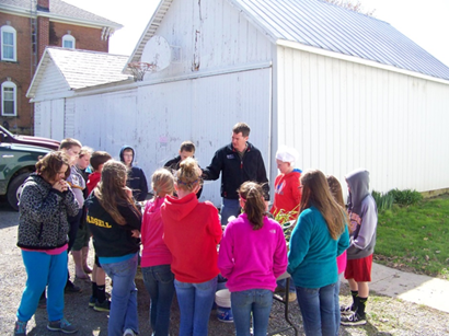Crawford SWCD Conservation Field Days St. Joe's students 2014Each student group was able to walk through the woods while the forester discussed timber management and how to identify trees and forest plants.  At the wildlife station, students were able to handle and touch pelts while discussing the importance of responsible population management.  They toured the milk parlor while learning about dairy farming and calves were available for the students to pet.  The soil & water conservation stop had the students making a “soil salad” and discussed the importance of conserving this important natural resource.  At the hands-on station the students were able to play a game learning where our food comes from. While at the agricultural equipment station the students had the opportunity to get a close look at many important farm implements associated with modern farming.
