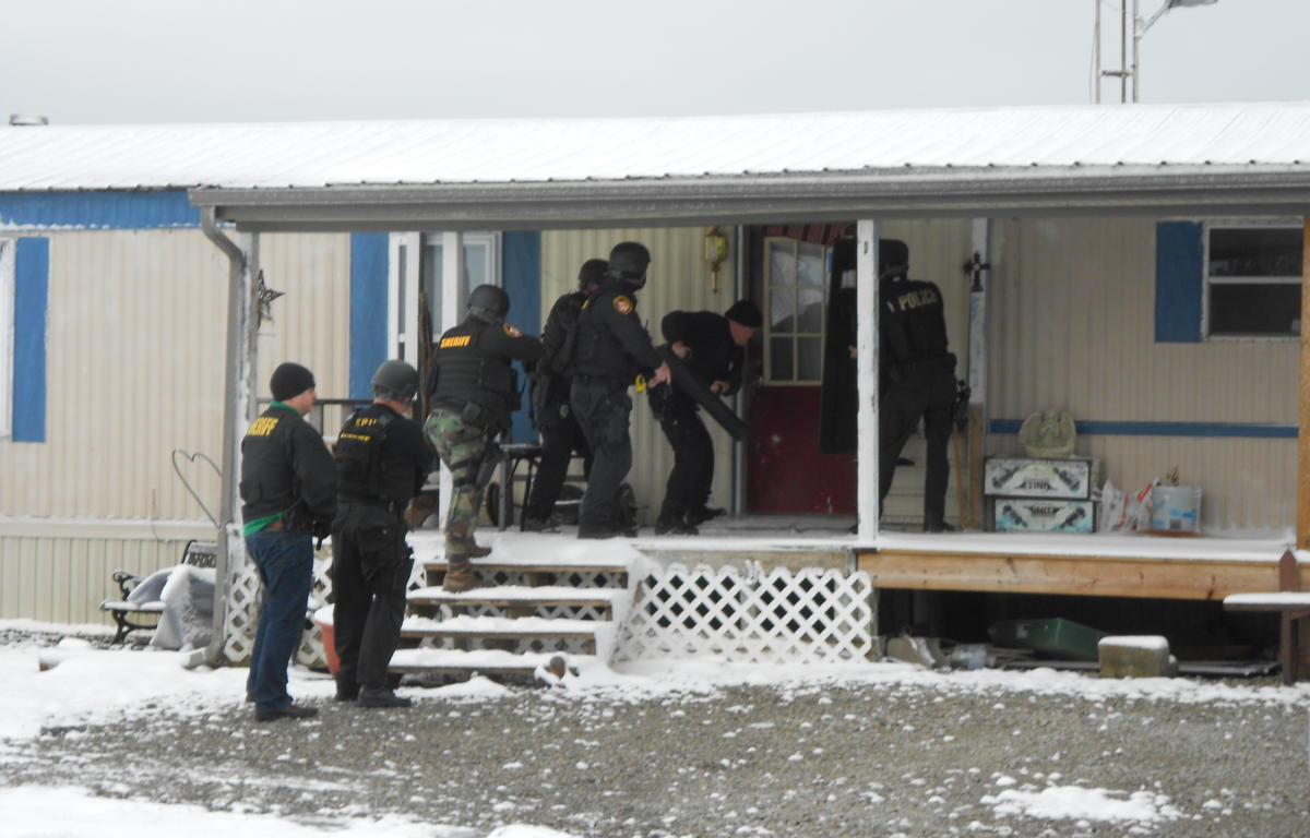 Officers from the Crawford County Sheriff’s Office, Huron County Sheriff’s Office, METRICH Enforcement Unit, Bucyrus Police Department, Galion Police Department, and the Ohio Bureau of Criminal Investigation Clandestine Lab Unit executed a search warrant at 8023 State Route 103, Plymouth on a snowy April morning.