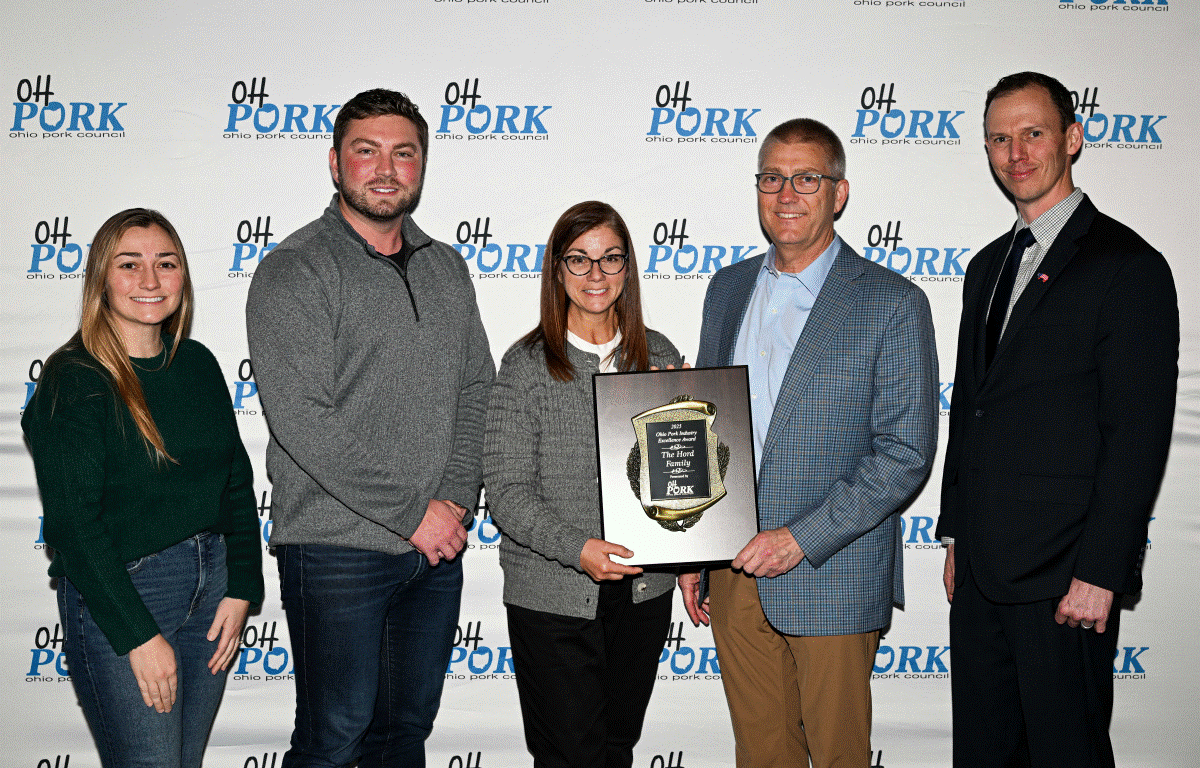 The Ohio Pork Council’s most prestigious honor, the Pork Industry Excellence Award, was presented to the Hord Family of Hord Family Farms, headquartered in Bucyrus, Ohio. This award recognizes a pork farmer or farm family whose long-standing commitment and leadership have made a lasting impact at the state and national level.