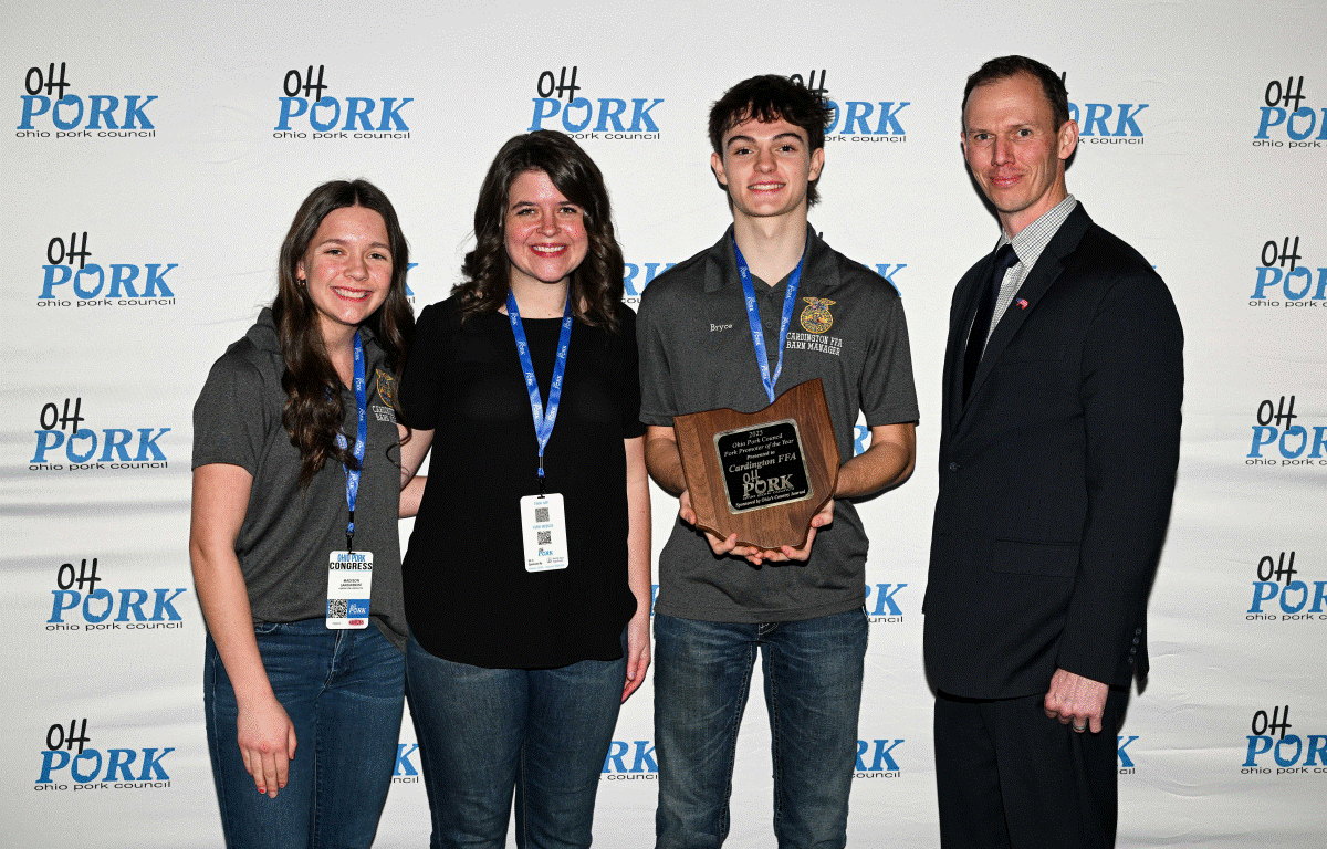 The Pork Promoter of the Year Award was presented to the Cardington-Lincoln FFA Chapter for its innovative and hands-on approach to educating students and the local community about pork production. Through its hands-on Pig Project curriculum and extensive outreach efforts, the chapter successfully connected classroom learning with real-world agriculture, generating enthusiasm and awareness well beyond Morrow County.