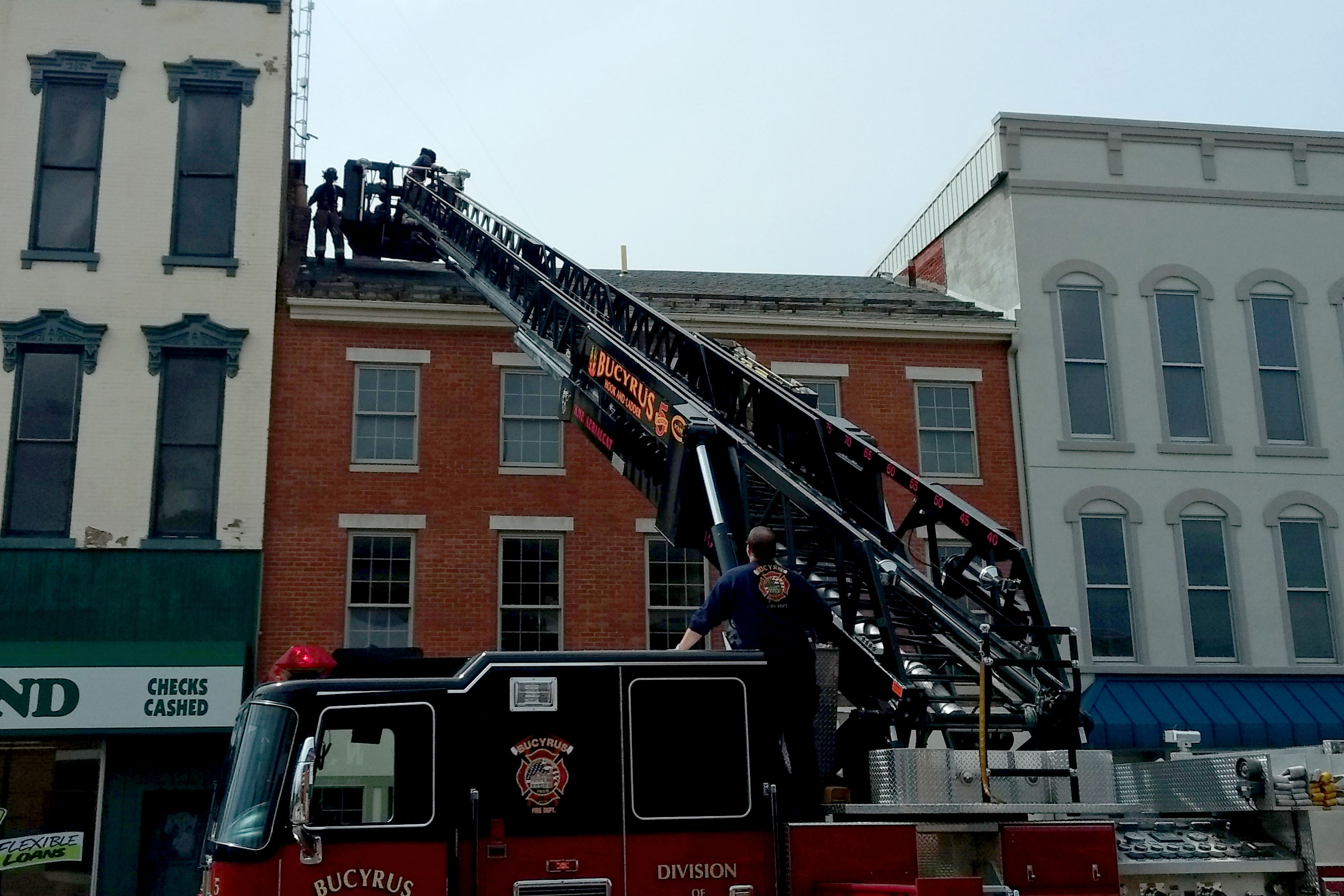 The Bucyrus Fire Department did not rescue a cat from a tree, but they did save unsuspecting pedestrians from crumbling chimney pieces Tuesday afternoon.