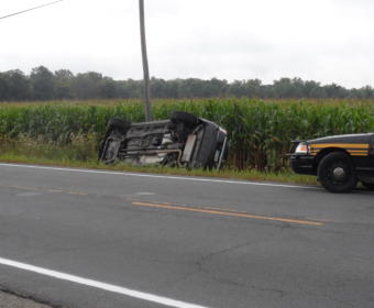The driver of a van was injured and transported to Galion Community Hospital on Friday morning when her vehicle rolled over in a ditch.
