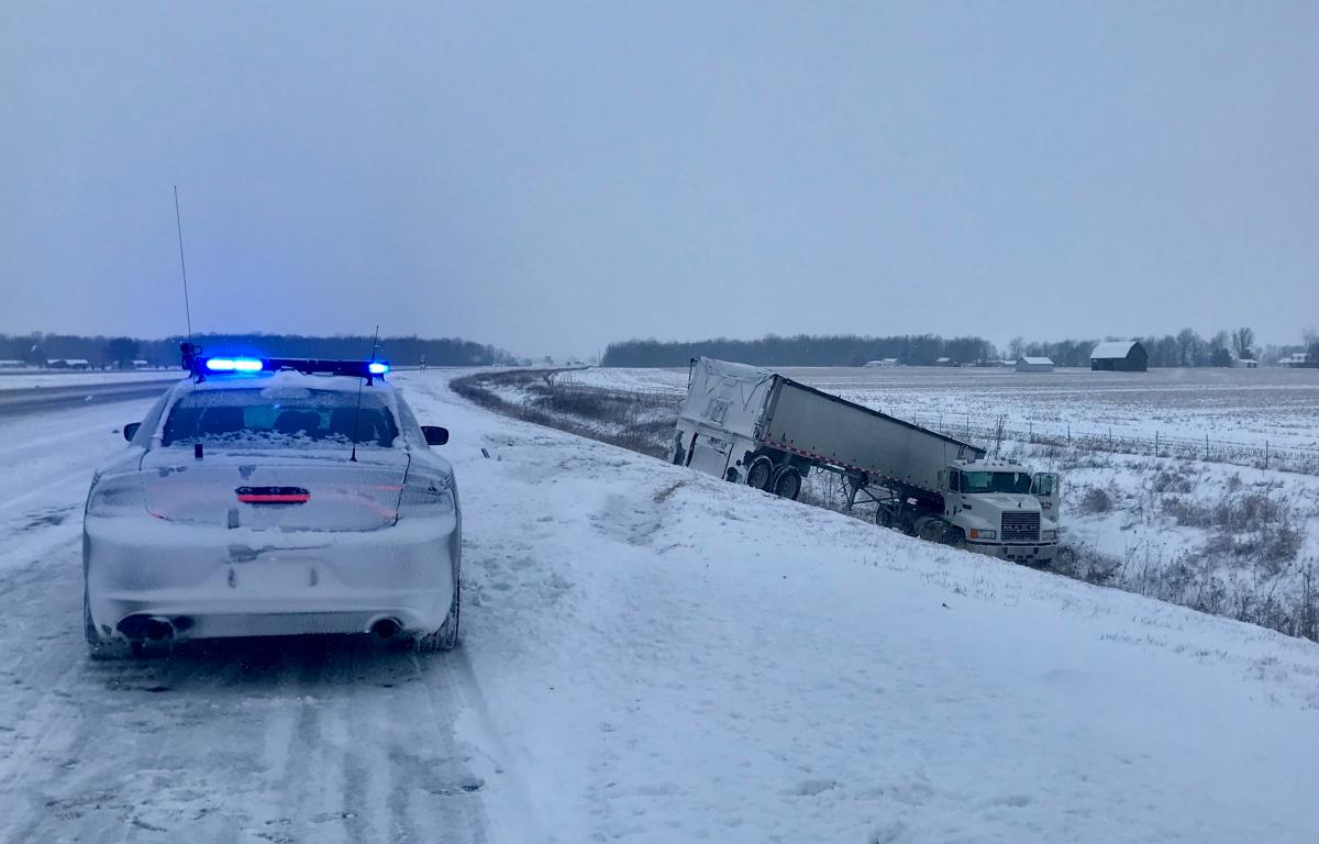 Daniel’s report said the vehicle maneuvered in front of the semi and caused the truck driver to hit his brakes. The truck then slid into a jackknife position while sliding into the ditch.