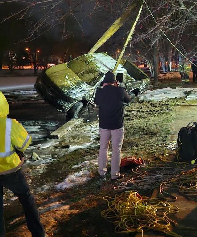 Police were called to the Mansfield park at approximately 12 p.m. after a caller reported striking an object with an ice auger. Using a sonar device, the individual confirmed the object under the ice was a pickup truck.