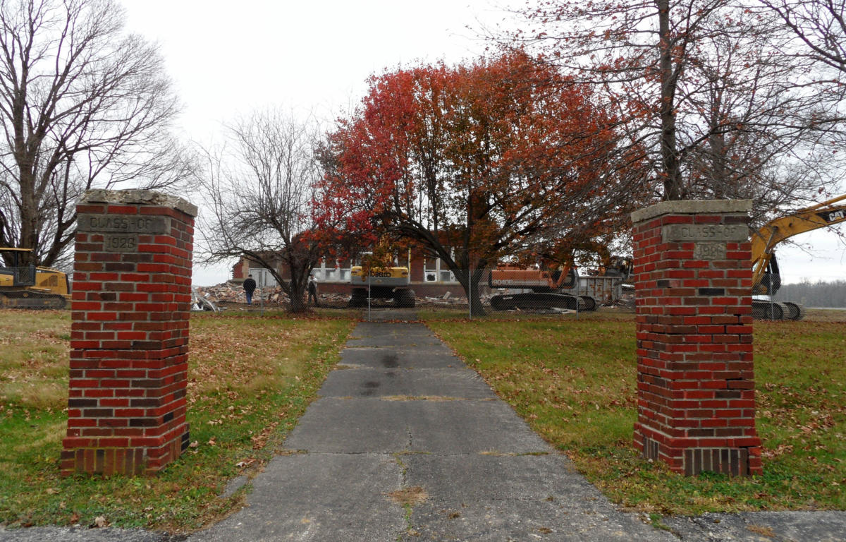 The former school had stood empty for a number of years but, now that it has been demolished, Martin said a lot of people have come up with ideas to honor the place where the school had stood. Ideas that have been bandied about included keeping the pillars in place, using the plaque in some kind of memorial, and possibly turning the area into a park.