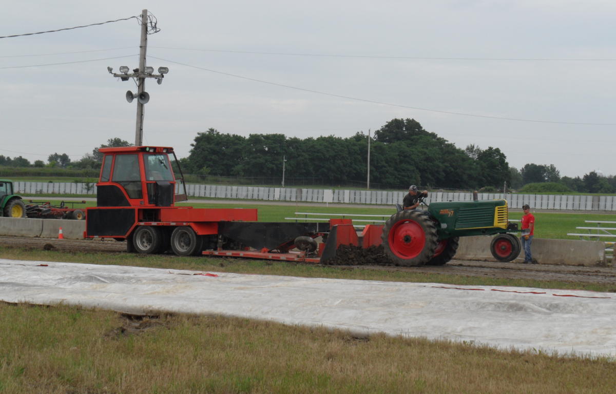 With damp conditions from the recent spate of rain in the area, the infield had to have a tarp placed over the pulling area on the infield.