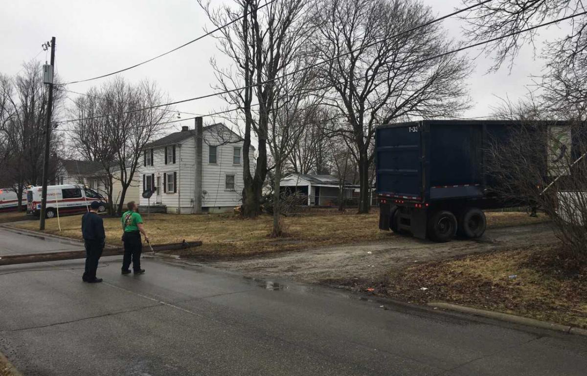 BUCYRUS — Emergency crews responded to a report of a truck striking a residence and knocking down utility poles Thursday morning.