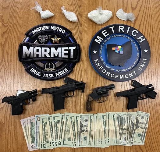 MARION COUNTY—On May 4th, 2022, law enforcement officers from the Marion Special Response Team, Marion City Police Department, Marion County Sheriff’s Office, and the FBI (Mansfield Office-Cleveland Division) executed search warrants for a residence in the 300 block of Columbia Court and a residence in the 3000blk of Marion Waldo Road in Marion County after an investigation by detectives from the MARMET Drug Task Force.