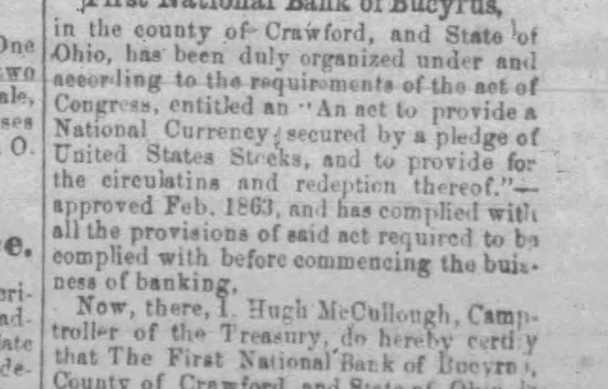 The story of 131–133 begins in 1859, when John A. Gormley organized Peoples Deposit Bank, marking the start of formal banking in Bucyrus. In 1864, the institution became the First National Bank of Bucyrus, officially chartered under the National Banking Act. For decades, the building was a cornerstone of local finance, even sharing space with Miller & Robinson Jewelers in its early years before expanding into the jewelry shop for offices.