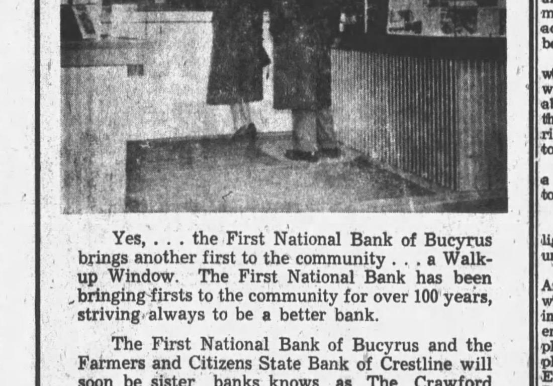 In 1961, the bank adopted a new name—Crawford County National Bank—and continued to grow with the community. On January 1, 1982, it merged with Bucyrus City Bank to form United Bank N.A., which operated at this location well into the late 20th century.