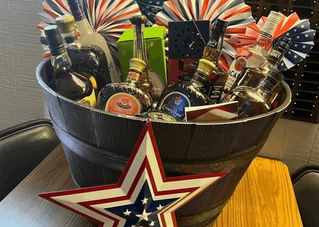 The basket includes a variety of premium spirits such as Crown Royal, Willett Bourbon, Buffalo Trace, and more, with the winner announced on Saturday night.