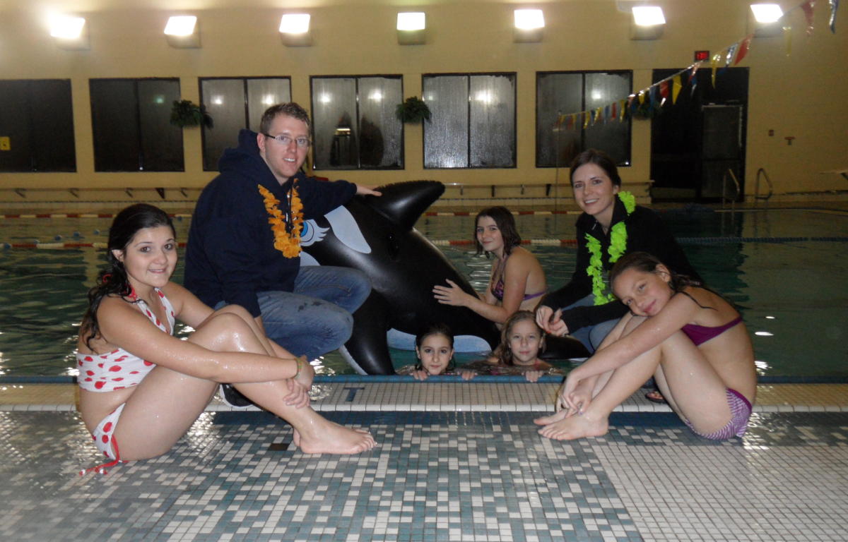 The organized part of Friday night’s swim consisted of a hula contest, the limbo and beach volleyball. Next month will see a Valentine’s Day themed, January 21, event with a piñata, water tag, and “I Like”. March’s party, March 21, will be centered around St. Patrick’s Day with a “Find the Pot of Gold”, a hand stand contest, and Marco Polo. Each party will be held from 6:30 pm to 8:30.