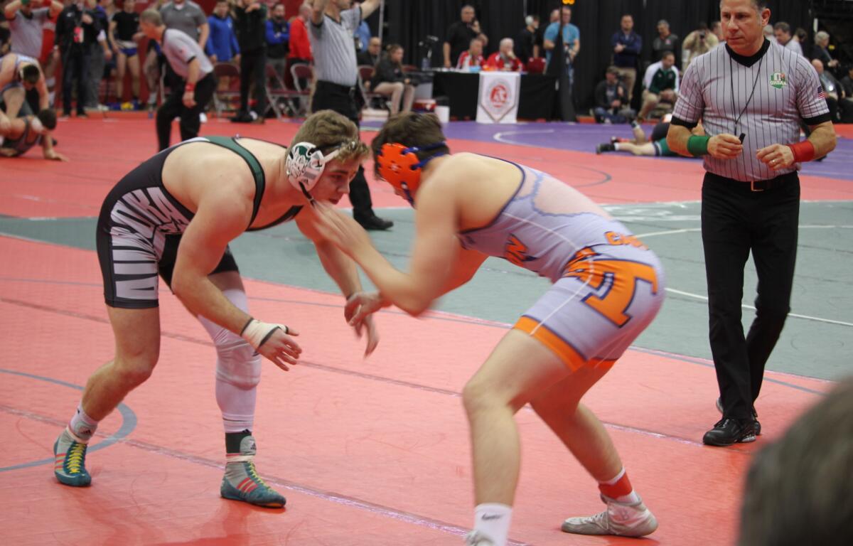 Upper Sandusky and Galion wrestle at Norwalk district Saturday.