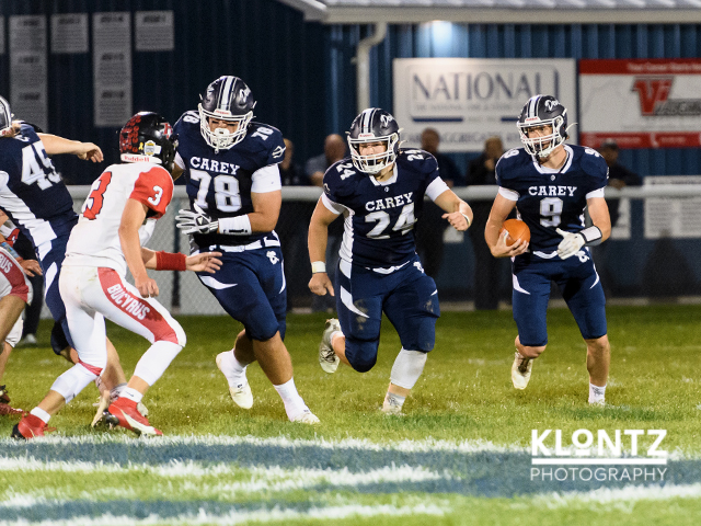 Eli Steen (904 yards) leads the potent Carey run game. QB Carter Smiley has more than 1,400 yards of total offense. Linebacker Nathan Brodman leads the defensive unit with over 100 tackles.