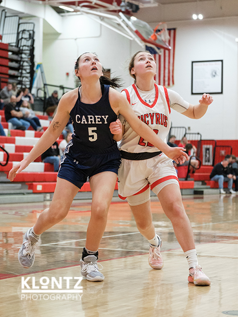 Carey (18-3, 10-3 N10): Shots 25; 3-pt. shots 4 (Rachel Reinhart 3, Kelsey Bursby); Free throws 2-4; Rebounds 30; Turnovers 12. Scoring: Kelsey Bursby 3 2 9, Rylee Row 3 0 6, Rachel Reinhart 4 0 11, Riley Yost 6 0 12, Kynlee Phillips 9 0 18.