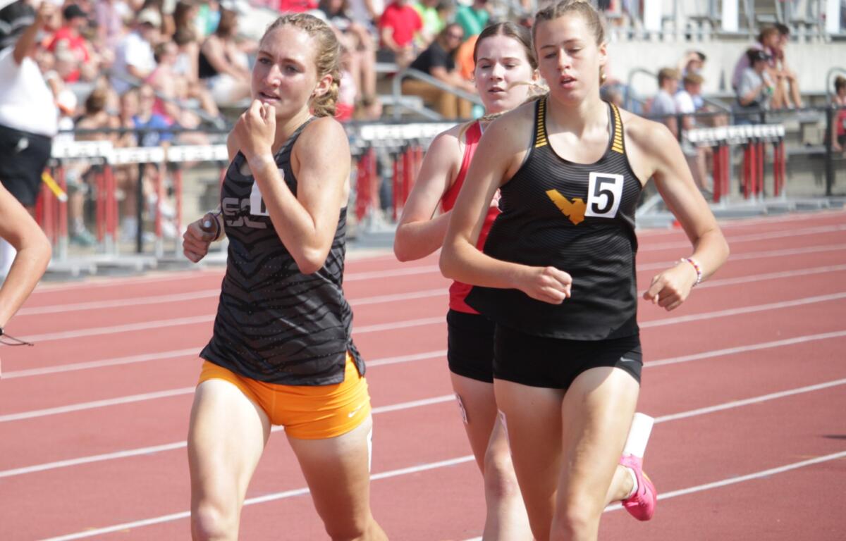 RELAY PLACES: Seneca East’s Lilly Schiefer and Crawford’s Cecilia Chase both placed in the 1600-meter run.