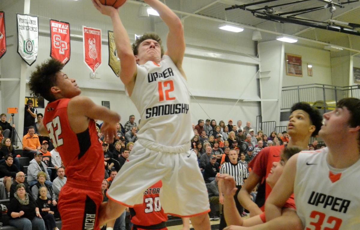 Leading 28-20 late in the first half, Upper Sandusky got a Vent basket inside and then beat the buzzer on a Brett Montgomery 3-pointer to make it 33-20.